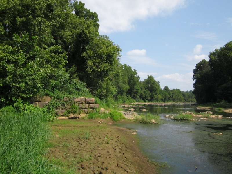 The Rivanna River, through this section of Charlottesville, is now a very different river, returning to a natural state, much like it was before the structure was built in the early 1800’s. In those days, the entire length of the Rivanna, from the Port of Pireus to Columbia, contained a series of flat-water impoundments behind dams, used to harness water power for mills and to fill locks for transport of goods and people. The only remaining structures now on the Rivanna main stem are the dam that created the South Fork Rivanna Reservoir, impounded for our urban drinking water supply, and small dams on the North Fork at Camelot (also for drinking water) and Advance Mills (no apparent use).